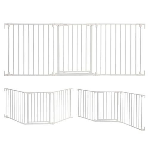 COMOMY 380cm Extra Wide Baby Gate, Dog Gates for Stairs Doorways, Fire Guard Safety Gates for Kids&Pets, Auto Close Baby Fence Barrier Indoor with Door, Hardware Mounted, 6-Panels (76cm Tall, White)