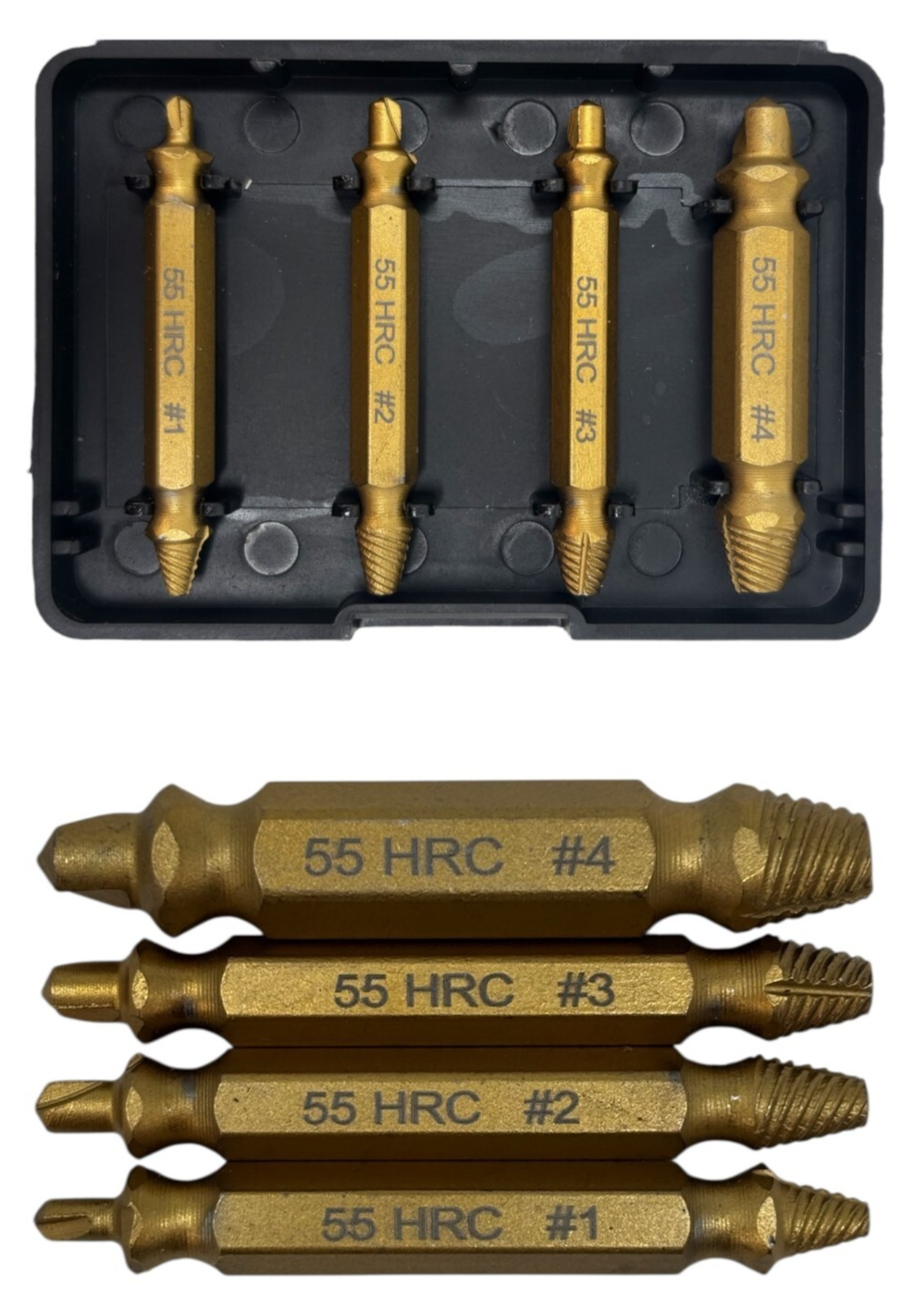 SHOP-STORY - Set of 4 Damaged Screw Extractor Bits for Removing Broken, Damaged Screws
