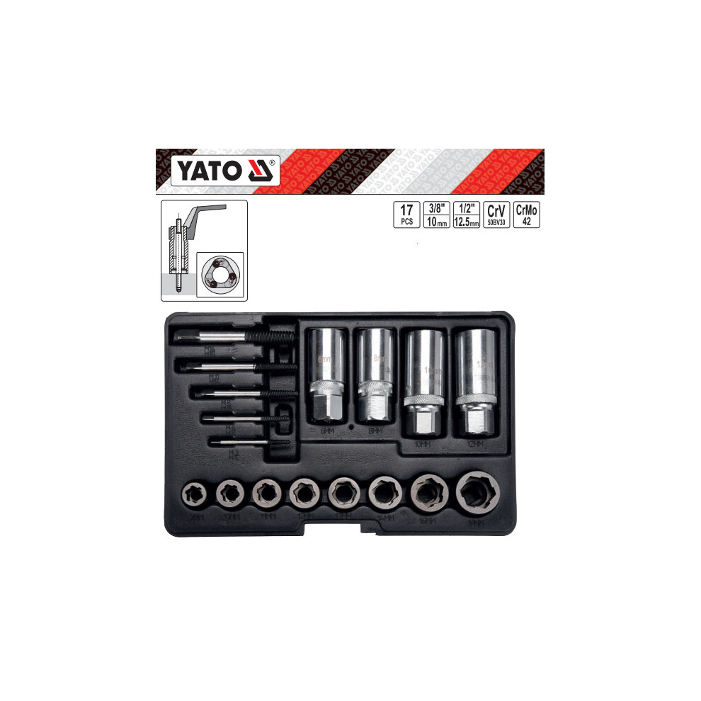YATO YT-06033, roller stud, nuts and screws extractor set 17pcs
