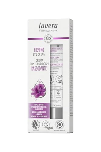 lavera Firming Eye Cream - triple hyaluronic acid and bakuchiol - reduces eye wrinkles - Green Lift Complex - natural cosmetics - vegan - organic (1 x 15ml)