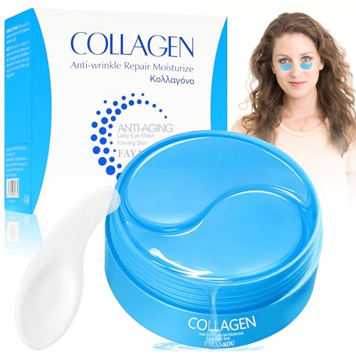Collagen Eye Pads Anti Aging, 60 Pcs Hyaluronic Acid Eye Pads Against Dark Circles, Bags, Wrinkles, Dark Circles & Puffiness, Cooling Moisture