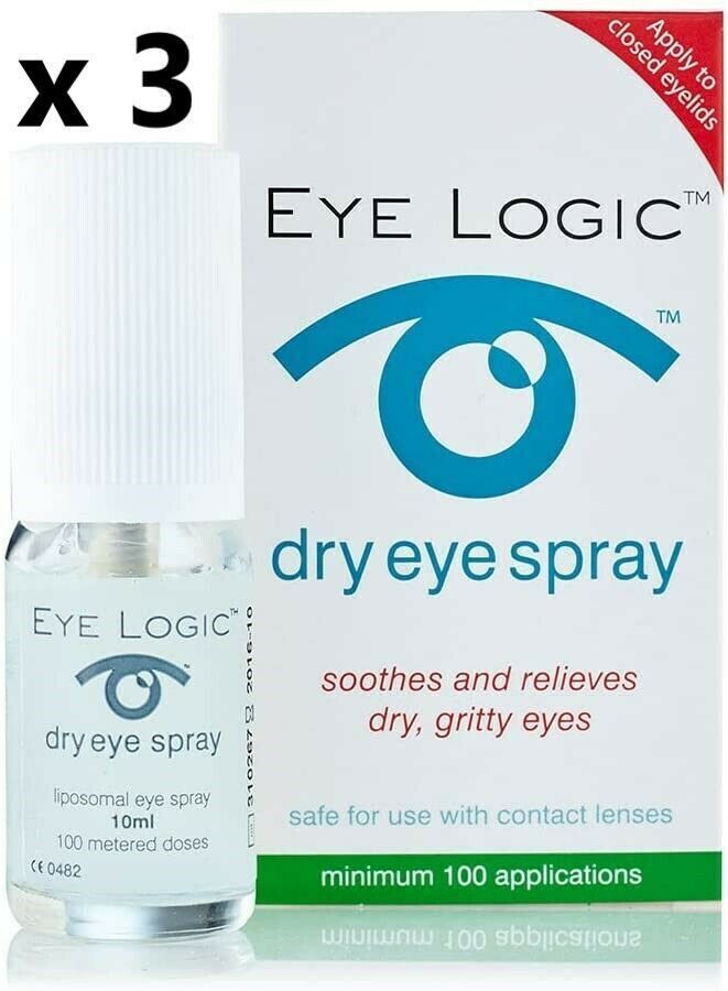 3 x Eye Logic Spray Relief for Dry Eyes 10ml - bulk buy saver! 300 doses