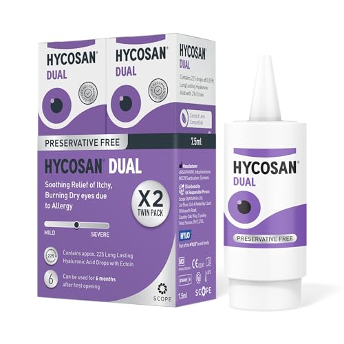 Hycosan Dual Twin Pack - Double Action Eye Drops with Hyaluronic Acid and Ectoin for Soothing Relief of Itchy, Burning or Dry Eyes Due to Allergens - Preservative Free - 2x225 Measured Doses