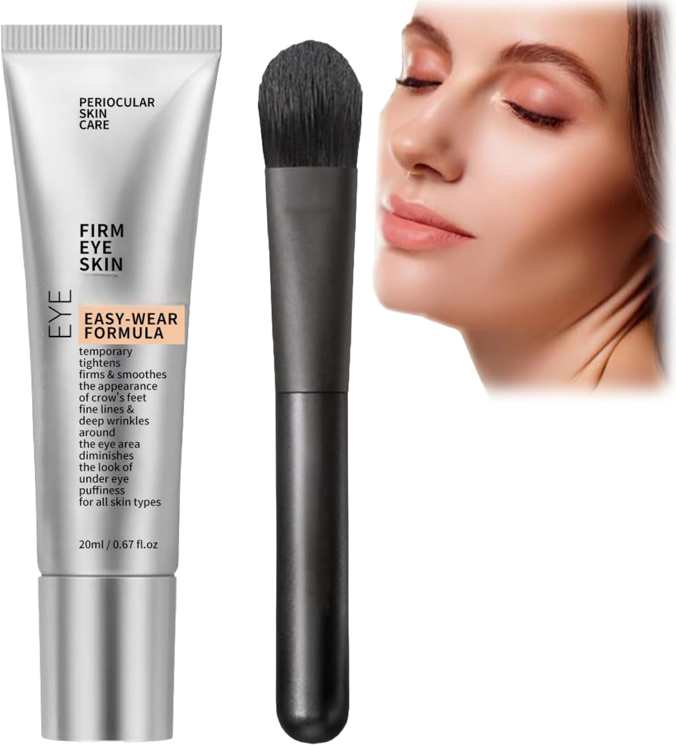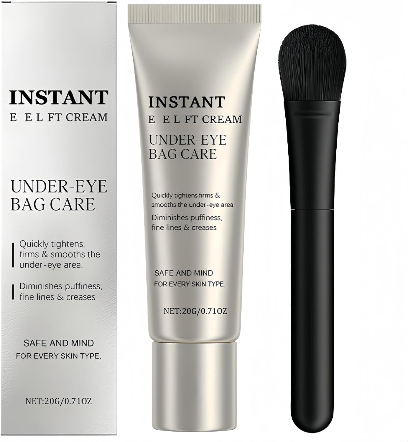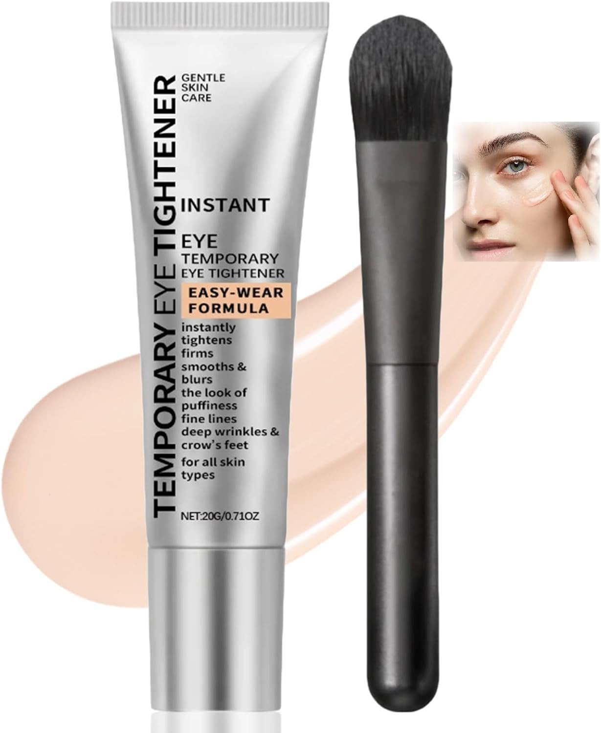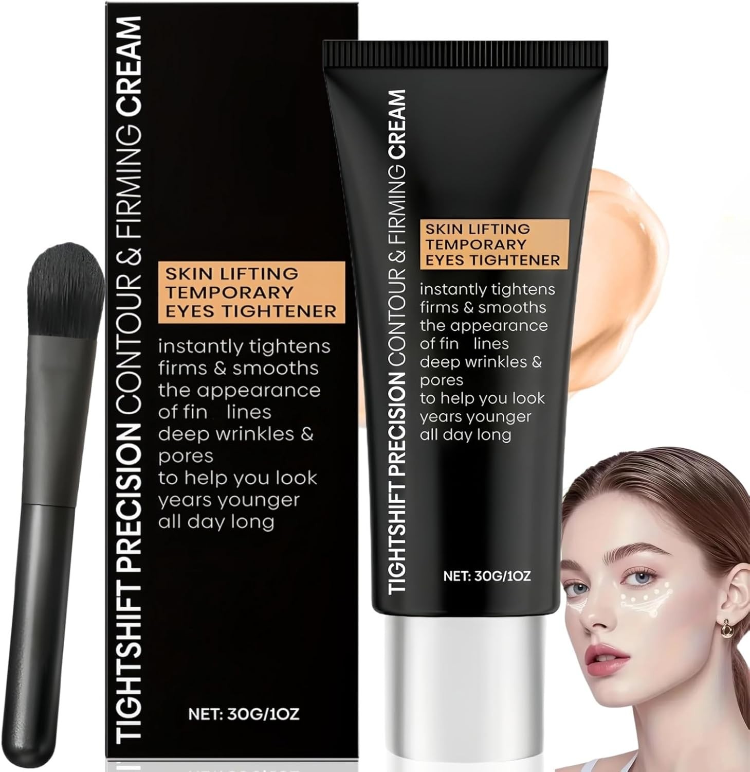 Eye Tightening Cream with Brush, Instant Under Eye Lift, Reduce Puffiness, Smooth Fine Lines, 2oz