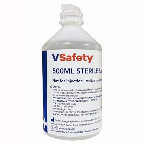 V Safety 500ml Sterile Saline Eye Wash Bottle – 0.9% Sodium Chloride Solution – for Rinsing Eyes, Dust & Debris – Single Use – No Eye Cup