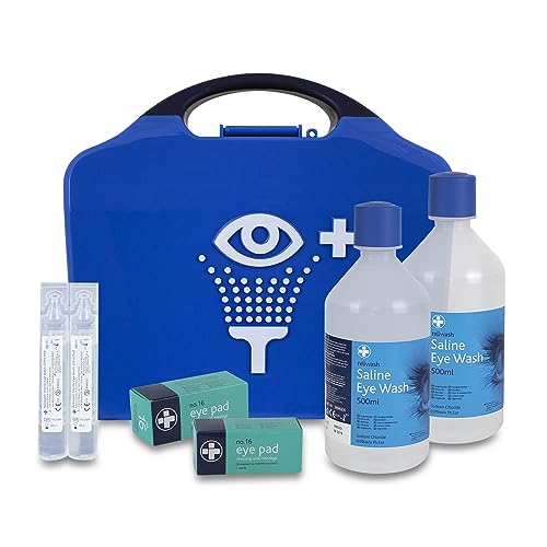 Reliance Medical First Aid Eye Wash Kit - 2 x 500ml Reliwash Eyewash Bottles with Mirror - 2 x 20ml Saline Sterile Solution Pods Drops for Eyes And Eye Pads