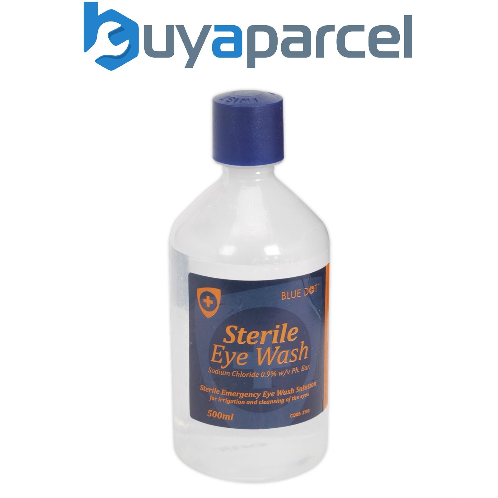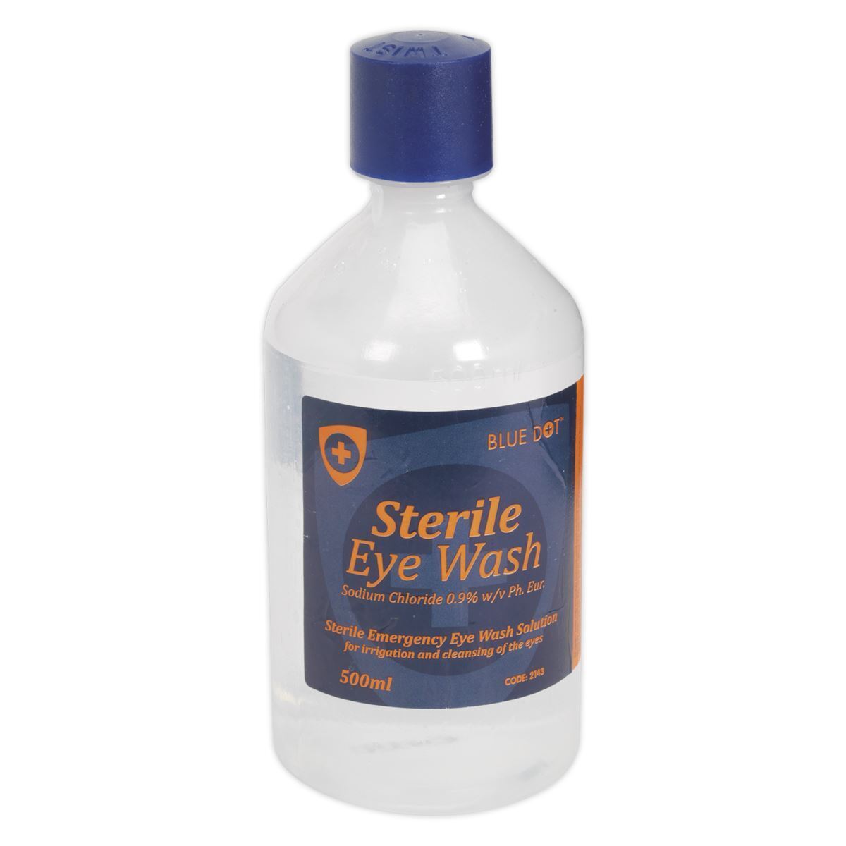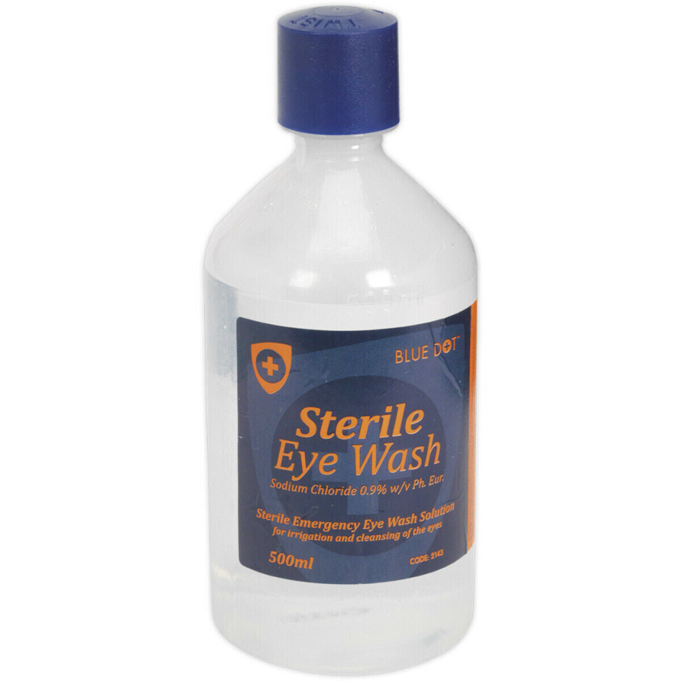 Sealey Eye Wash Solution 500ml Sterile Single Use Emergency Saline EWS50
