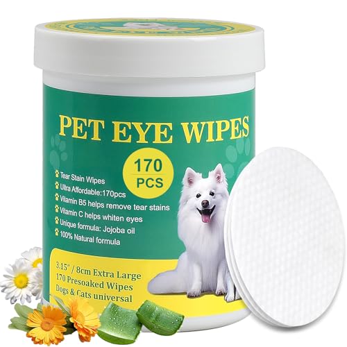 HTU 170Pcs Dog Eye Wipes - Extra Large 8cm Natural Jojoba Oil & Aloe Eye Wipes For Dogs & Cats | Gently Removes Tear Stain, Debris, Discharge, Crust For Eyes, Face, Hypoallergenic, Biodegradable