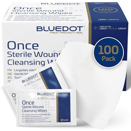 Blue Dot Sterile Saline Wipes 100 Pack: Alcohol-Free, Gentle & Hygienic: Wound Cleansing, Eye Wipes, First Aid, Piercings, Tattoo Aftercare, Hearing Aid Cleaning Kits & Post Procedure Care