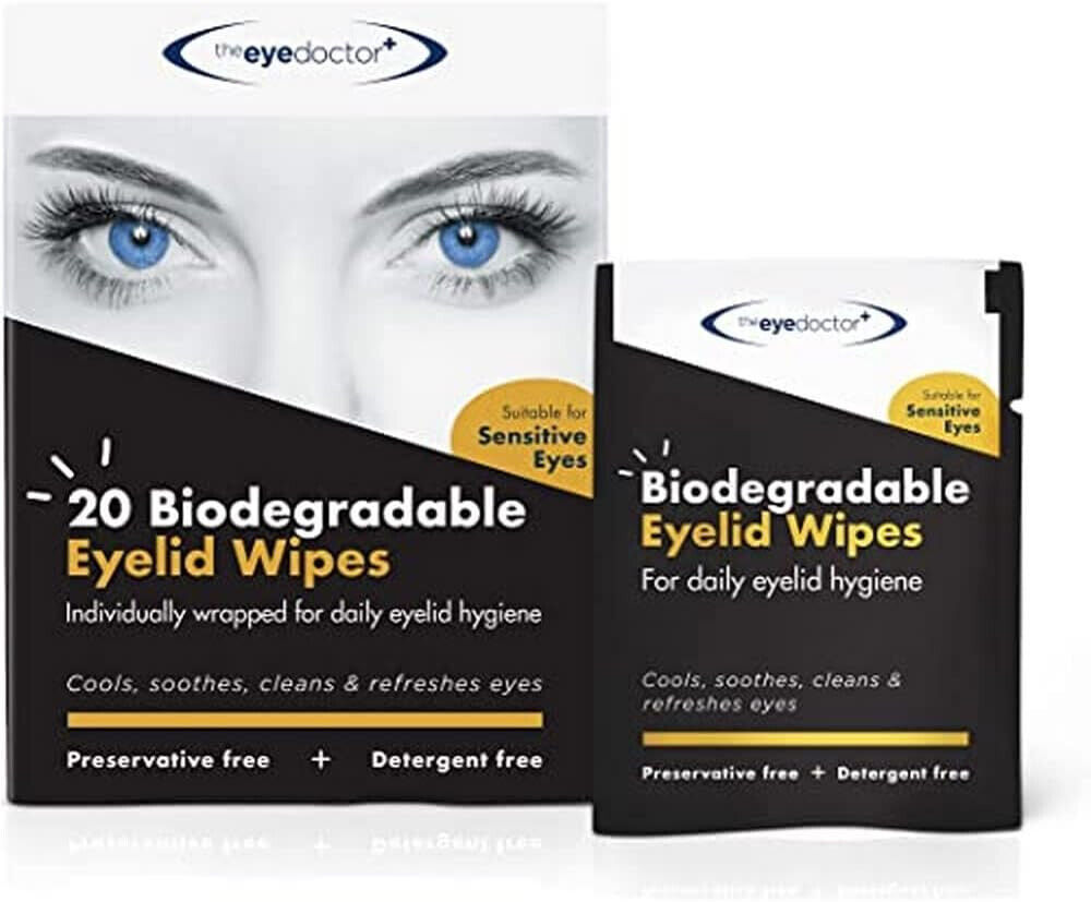 The Eye Doctor Eyelid Wipes x 80 - Suitable for use with Blepharitis, Dry Eyes, Sensitive Eyes & MGD - 80 x Biodegradable Eyelid Cleaning Wipes - Detergent and Preservative Free