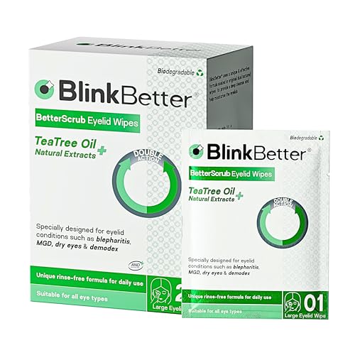 BlinkBetter Tea Tree Oil Eyelid Wipes- Natural Blepharitis, MGD & Dry Eye Relief Wipes | Cleansing, Soothing, Dual-Textured, Triple Moisture Formula | Biodegradable & Gentle - 20 Wipes