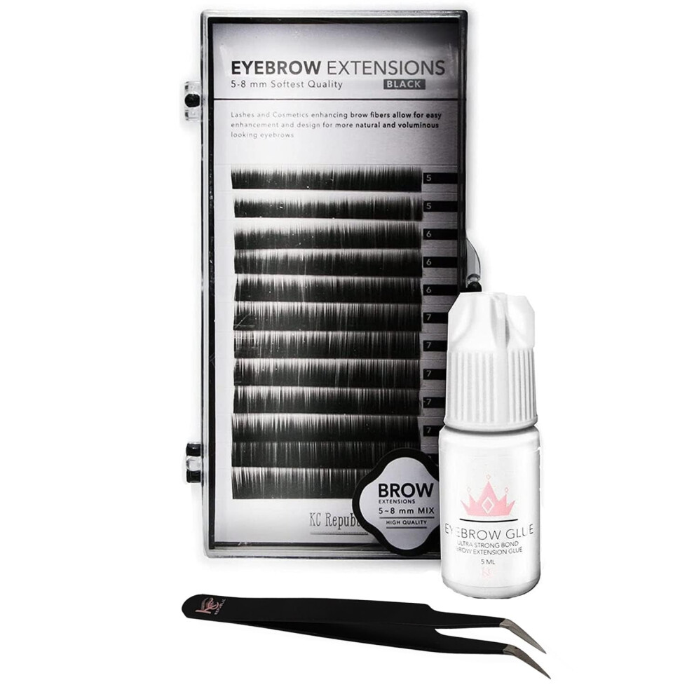 KC Republic Lash Eyebrow Extensions Kit with 1 x Trays of Mink False Eyebrows in Black Comes on Mixed Length Trays 5-8 mm Eyebrow Glue Clear & Extens