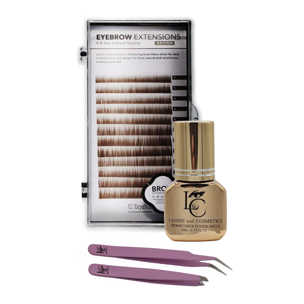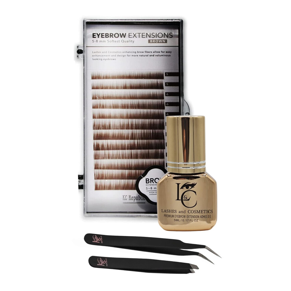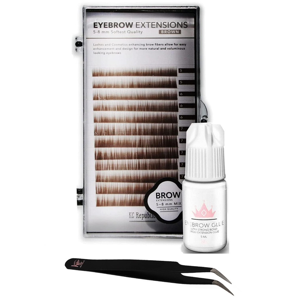 KC Republic Lash Eyebrow Extensions Kit with 1 x Trays of Mink False Eyebrows in Brown Comes on Mixed Length Trays 5-8 Mm Mix Eyebrow Glue Clear & Du