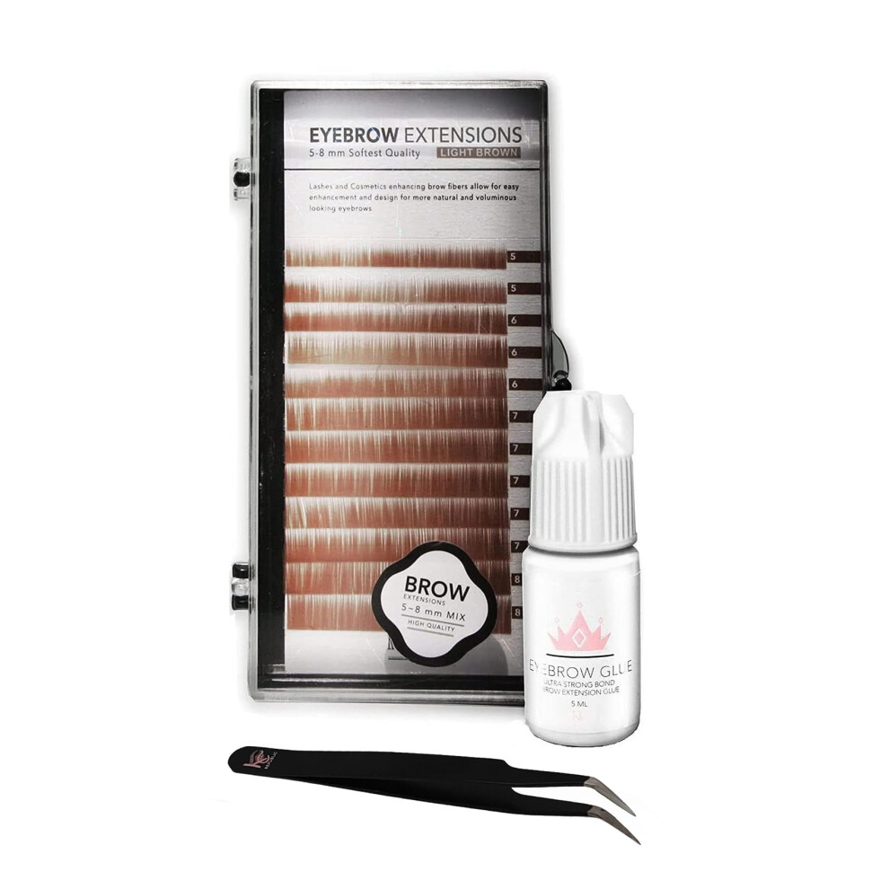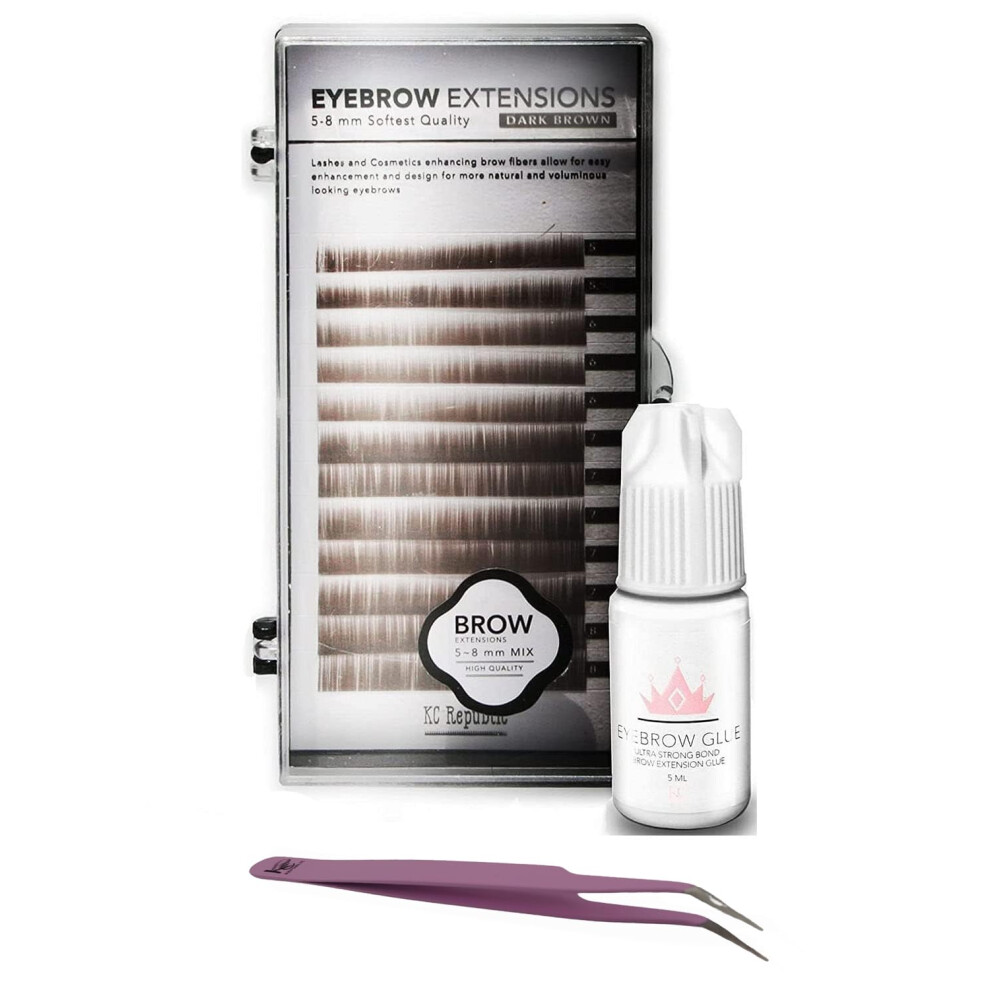 Eyebrow Extensions Kit with 1 x Trays of Mink Eyebrows in Dark Brown Comes on Mixed Length Trays 5-8 mm Mix Eyebrow Extension Glue Clear & Extension