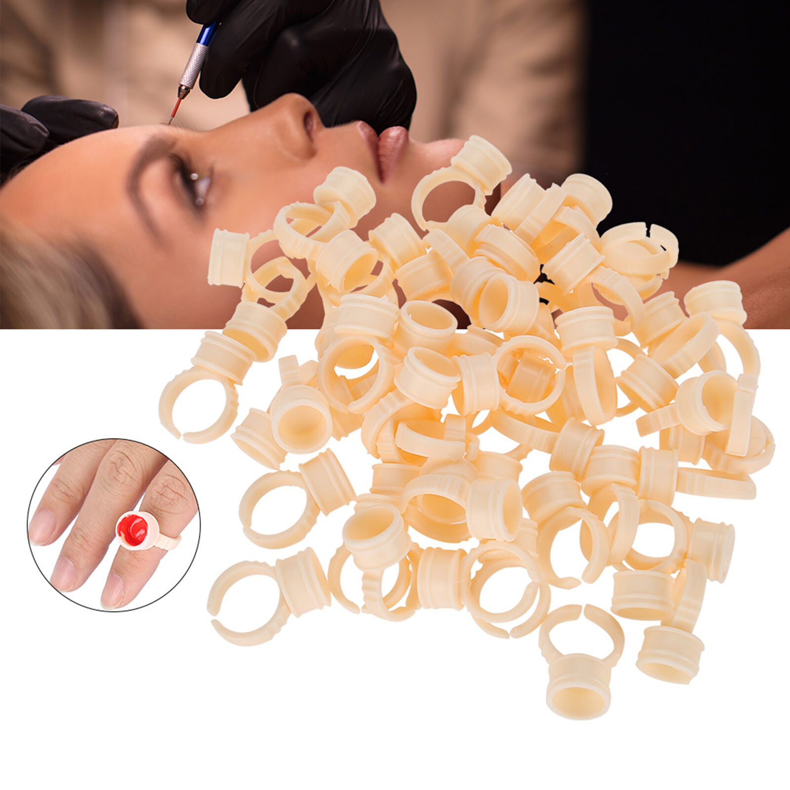 100pcs Permanent Ink Rings Eyebrow Lip Tattoo Pigment Holder Glue Cups (Medi TOU
