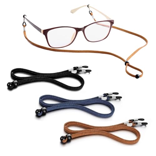 3Pcs Leather Glasses Straps - Universal Adjustable Glasses Chain, Cord & String Include Non-Slip Sunglasses Strap & Eyeglass Holder Glass String & Lanyard Spectacles Cord For Men, Women & Kids (70cm)