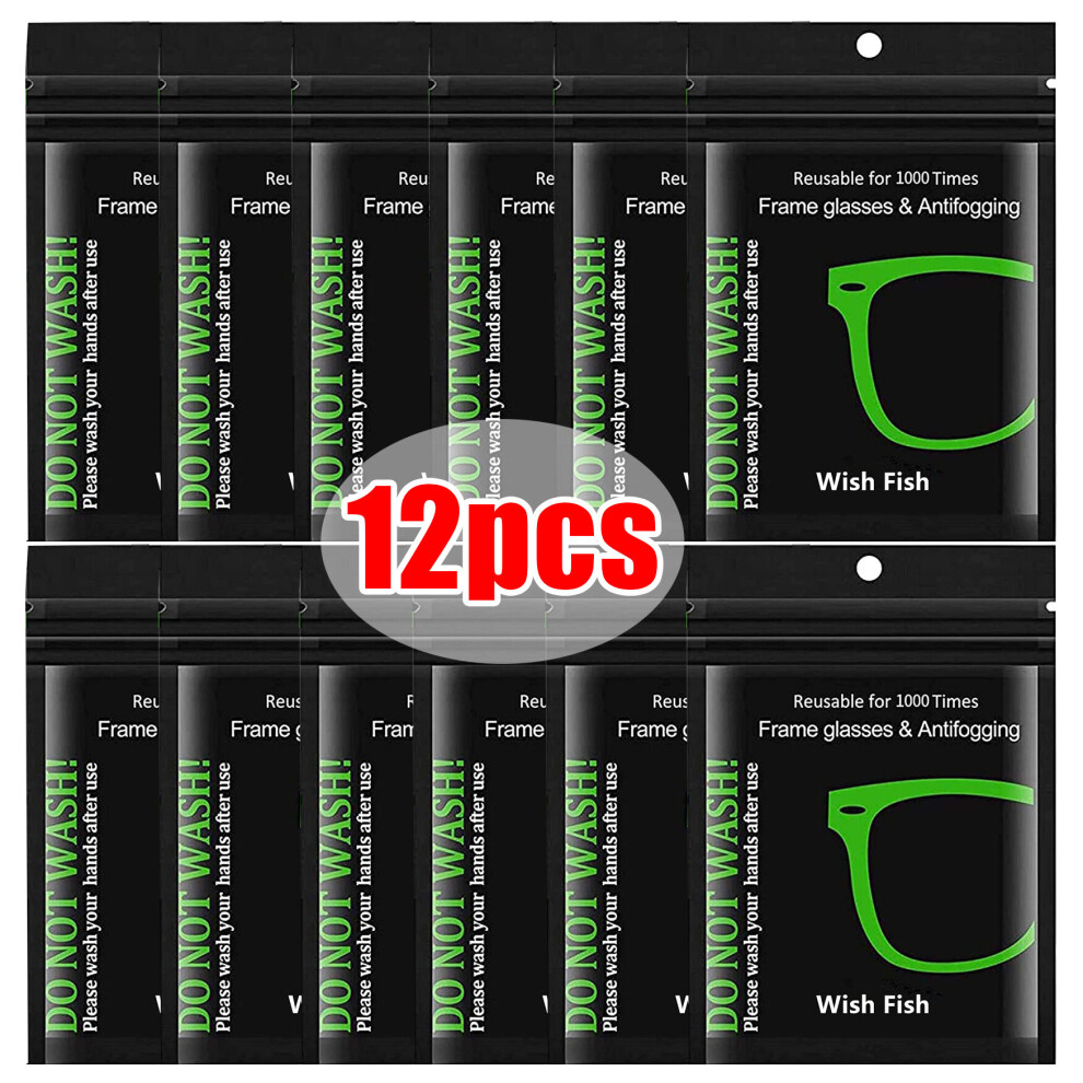 12Pcs Reusable Anti-Fog Wipes Glasses Pre-moistened Antifog Lens Cloth Defogger Eyeglass Wipe Prevent Fogging for Glasses Swim