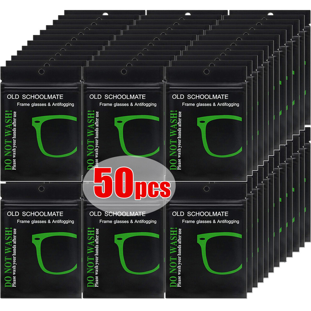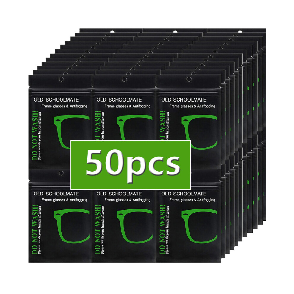 50Packs Reusable Anti-Fog Cloth Eyeglass Wipes Glasses Pre-moistened Antifog Lens Defogger Wipe Prevent Fogging for Eye Glasses