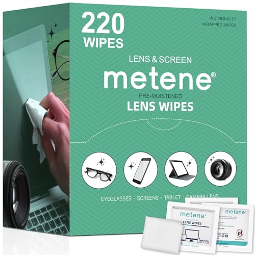 Metene 220 Pack Lens Cleaning Wipes, Pre-Moistened and Individually Wrapped Eyeglass Wipes, Glasses Cleaner for Eyeglasses, Camera Lens, Tablets, Phone, Computer Screen and Other Delicate Surfaces