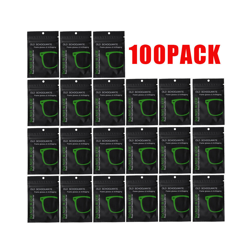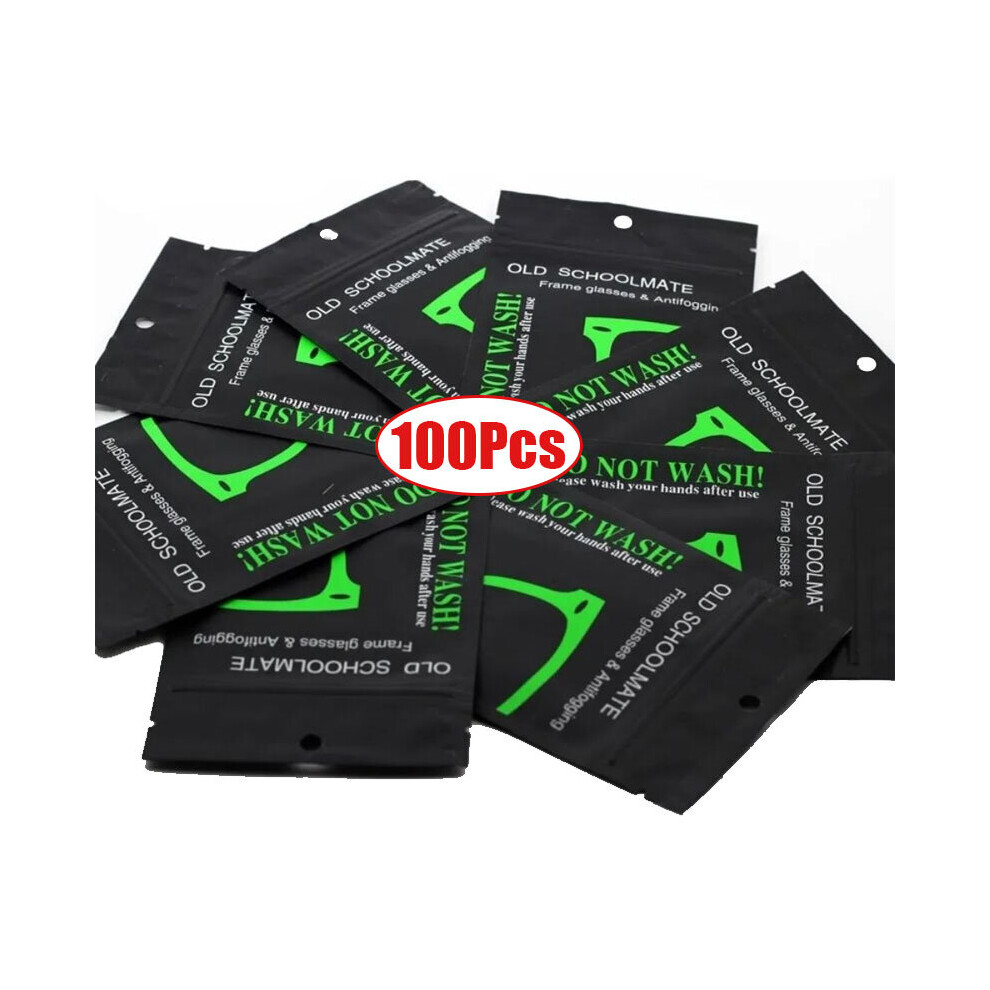 100Packs Reusable Anti-Fog Cloth Eyeglass Wipes Glasses Pre-moistened Antifog Lens Defogger Wipe Prevent Fogging for Eye Glasses