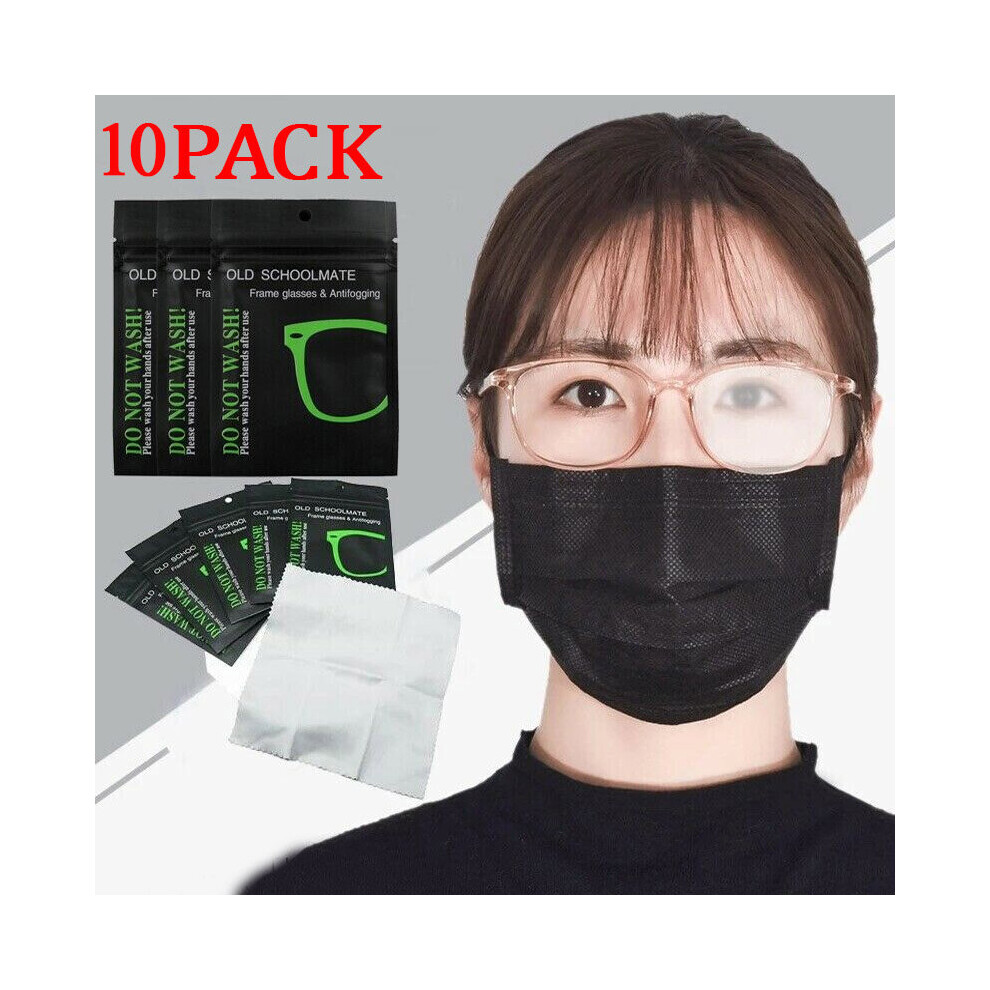 10Pcs Reusable Anti-Fog Wipes Glasses Pre-moistened Antifog Lens Cloth Defogger Eyeglass Wipe Prevent Fogging for Glasses