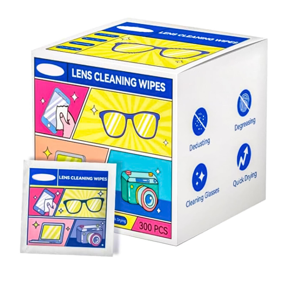 Lens Cleaning Wipes 300 Count Alcohol PreMoistened Eyeglass Wipes Individually Wrapped for Streak Clarity