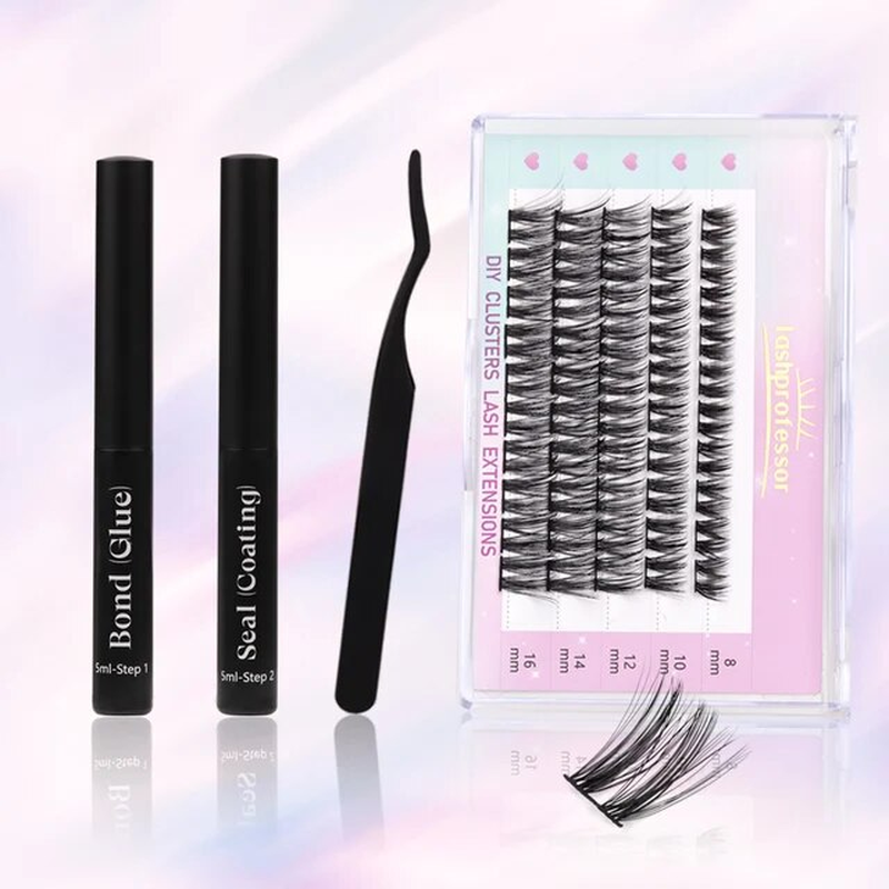 DIY Cluster Eyelash Extensions Kit with Lash Bond and Seal and Applicator for Be