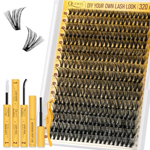 QUEWEL Clusters Lashes Kit 320 Pcs Individual-Lashes Kit, Waterproof Lash-Clusters Bond and Seal, Eyelash Clusters Applicator with Cluster-Lashes Glue Remover (QD-40D-kit)