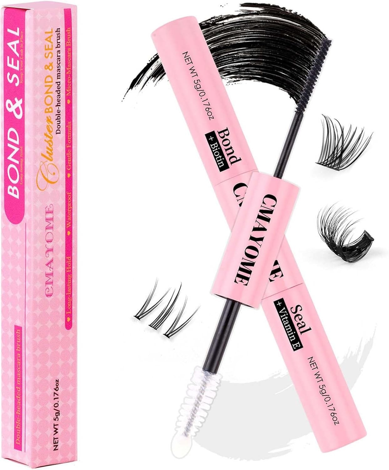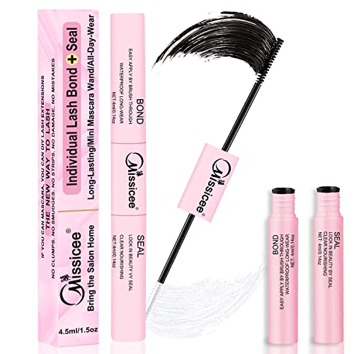 Missicee Bond and Seal Lash Glue 2 in 1 for DIY Cluster Lashes, Eyelash Bond and Seal Super Strong Hold 72 Hours, Latex Free, Waterproof, Mascara Wand Lash Glue for Sensitive Eyes, 1.0 count