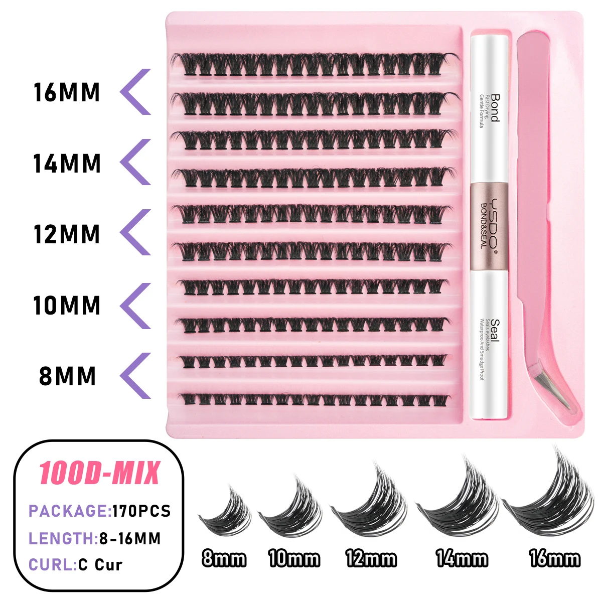 DIY Clusters Eyelash Extension Bond and Seal 2 in 1Individual Lashes Kit Mixed T