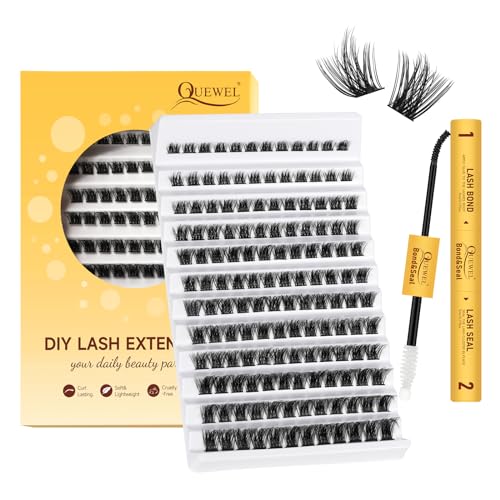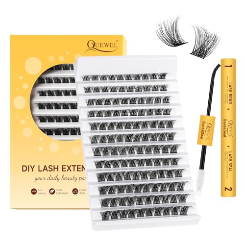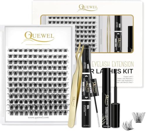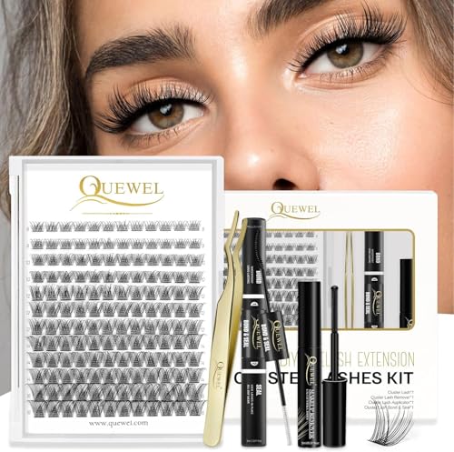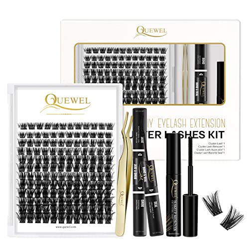 Individual Lashes 144 Cluster-Lashes QUEWEL DIY Eyelash Extensions Kit, Clusters-Eyelash Applicator, Cluster Lashes Bond and Seal Super Hold, Clusters Lash Glue Remover Easy to Remove(QU-RR-DH-02)