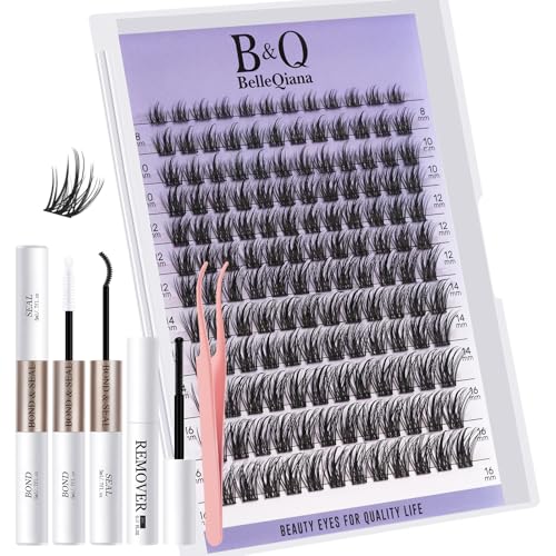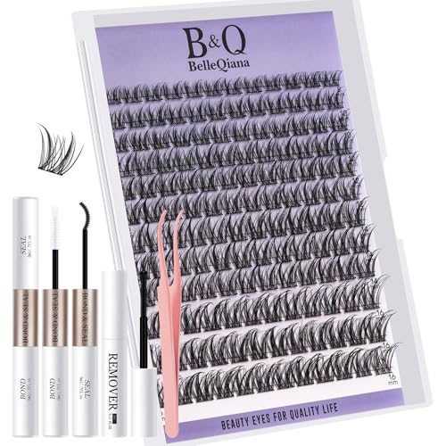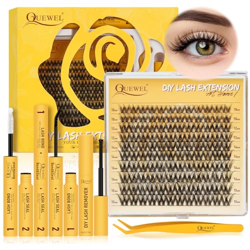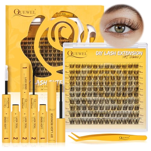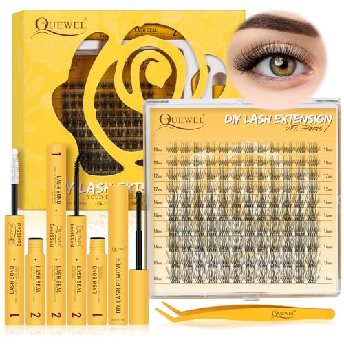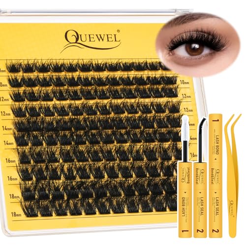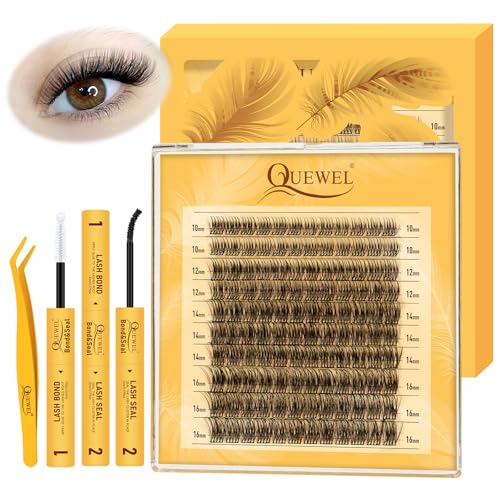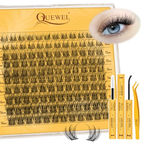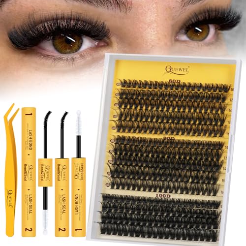QUEWEL Fluffy Individual Eyelashes Kit 60+80+100D Clusters Lashes Kit, Eyelash Individual DIY Lash Extension kit Mix 10-16mm, Cluster Lashes with Bond and Seal (60D+80D+100D-KIT)