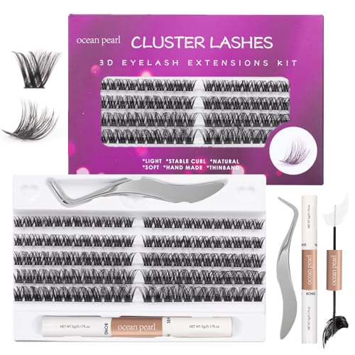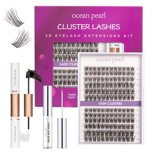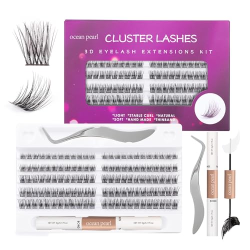 Ocean Pearl Cluster Lashes Kit 120PCS Lashes Individual Cluster 10-16mm DIY Lash Extension Kit Natural Eyelash Clusters Thin Band False Eyelashes Lash Clusters Kit with Bond and Seal-DM23