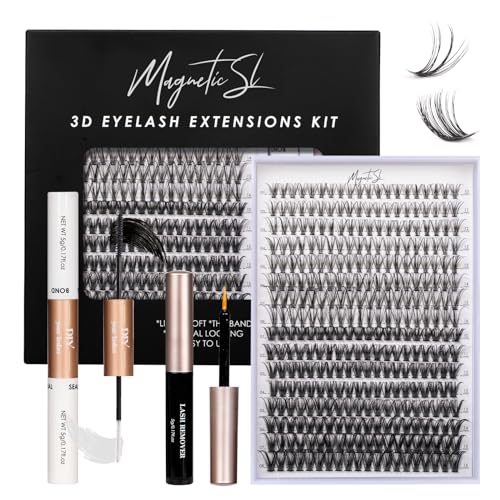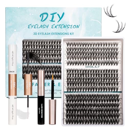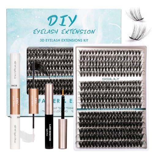SISILILY Individual Eyelashes Kit- Lash Extension with Bond and Seal-320 Lash Clusters 3D DIY False Eyelashes Mega Cluster Lashes with Eyelash Glue Remover and Tweezers C D Curl-60D+80D