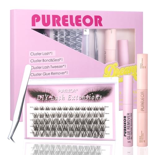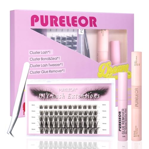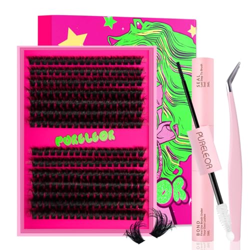 PURELEOR Individual Cluster Lashes Kit Lash Extensions Set DIY Multiple styles Eyelash Clusters with Bond and Seal Tweezers 100D Curl Mixed 10-16mm