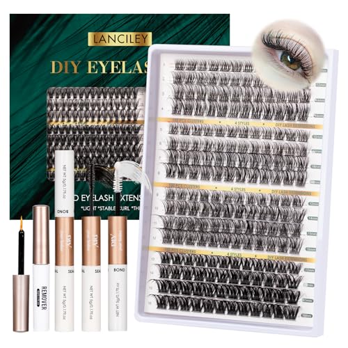 Lanciley DIY Lash Extension Kit 120 Cluster Lashes Individual Lashes with Lash Bond and Seal Tweezers Eyelash Extensions Kit Easy to Apply at Home C D Curl Mix 10-16mm - L01