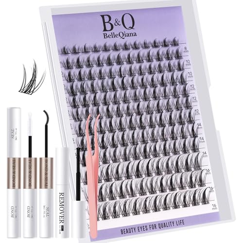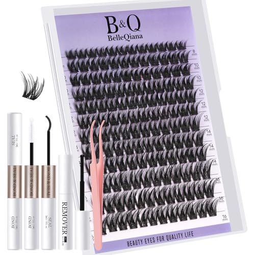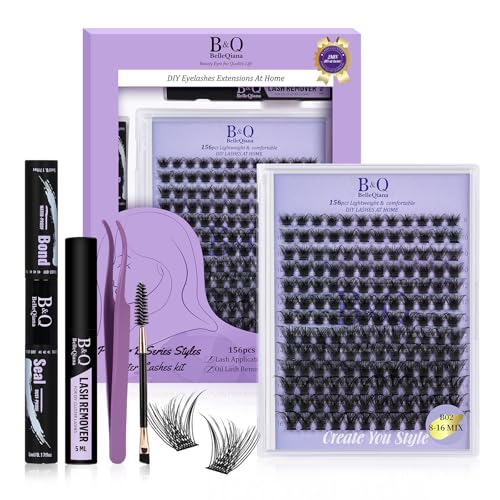 B&Quagen Lash Extension Kit B02 DIY Lash Extension Kit 156 PCS Lash Clusters 8-16mm Cluster Eyelash Extensions Kit with Lash Bond and Seal Lash Applicator Tool (Kit,B02)