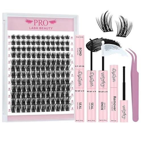Cluster Lashes Kit 144pcs Eyelashes Individual Kit Natural Eyelash Clusters 8-18mm Lash Clusters D Curl Lash Extension Kit with Bond and Seal Lash Glue Lash Remover Easy to Apply at Home