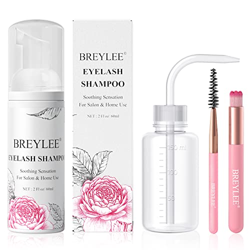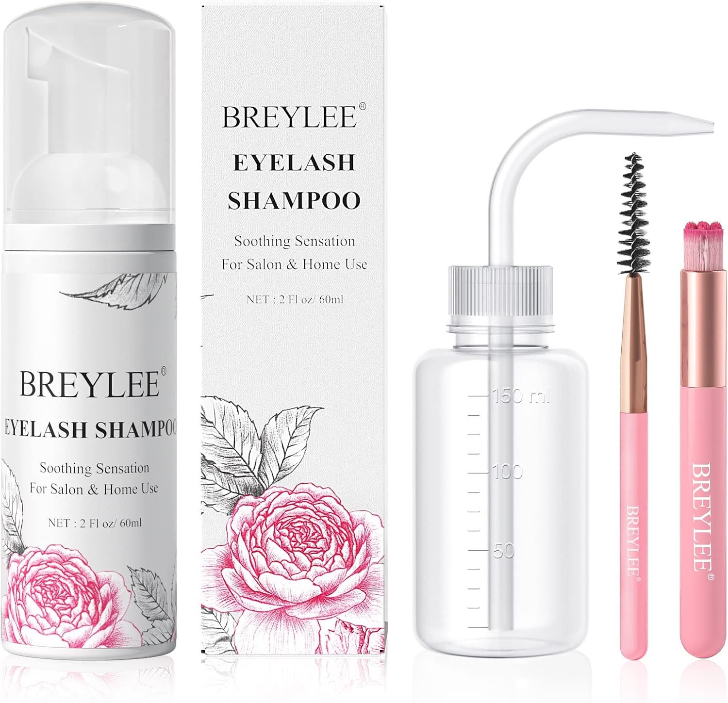 BREYLEE Lash Shampoo, 60Ml+Rinse Bottle+Wand+Brush, Eyelash Extension Cleanser f