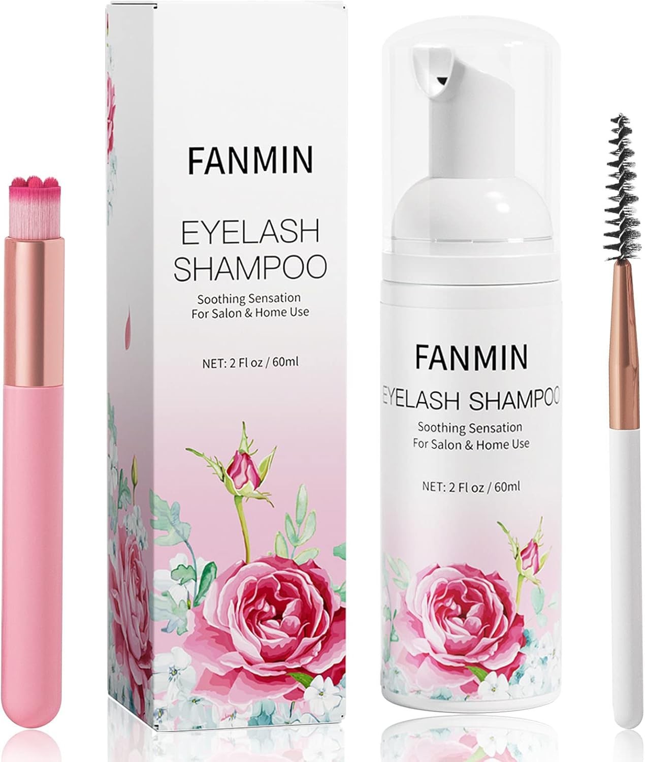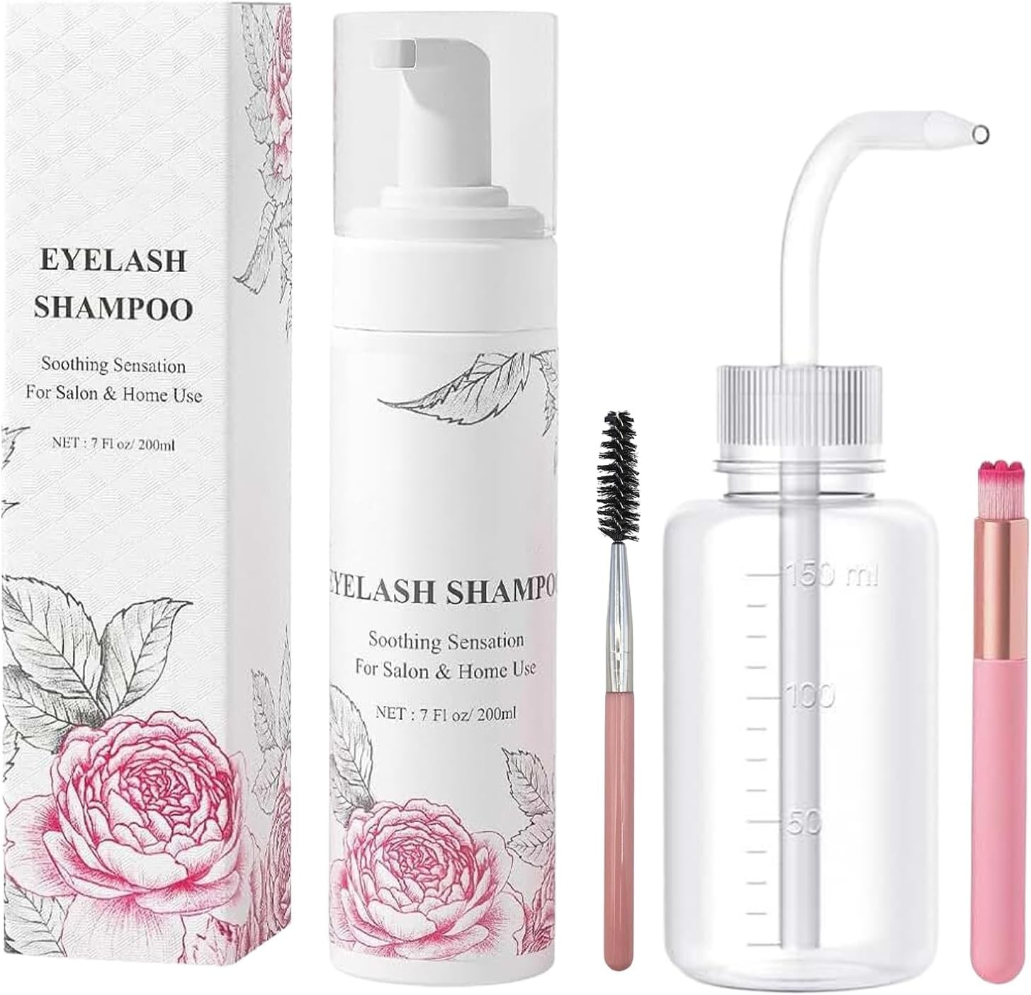 Lash Shampoo, 60Ml+Rinse Bottle+Wand+Brush, Eyelash Extension Cleanser