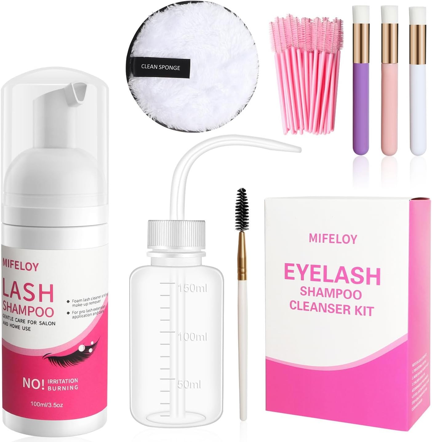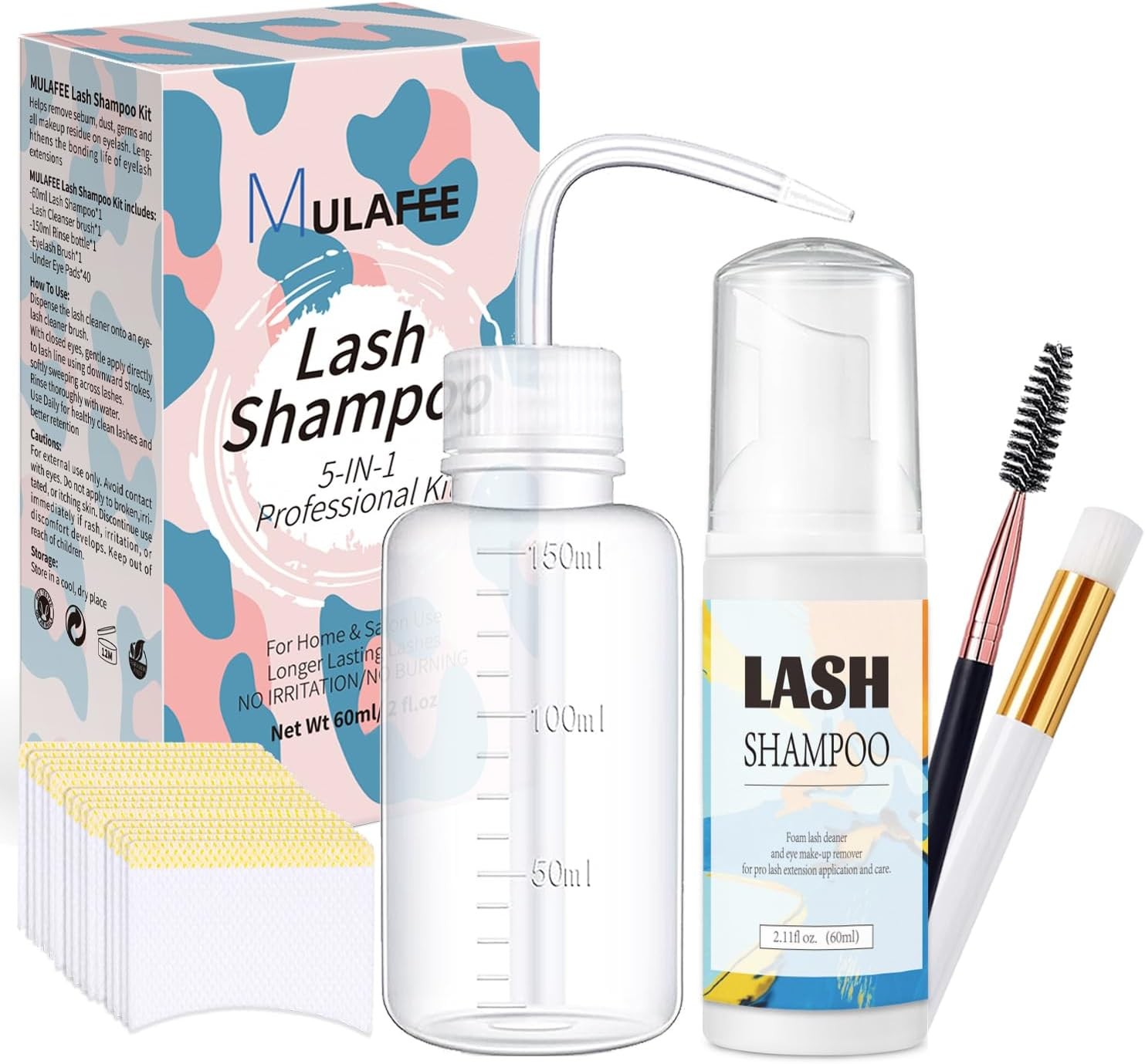 MULAFEE Eyelash Extension Cleanser, Lash Extension Shampoo Kit, Oils, Paraben &