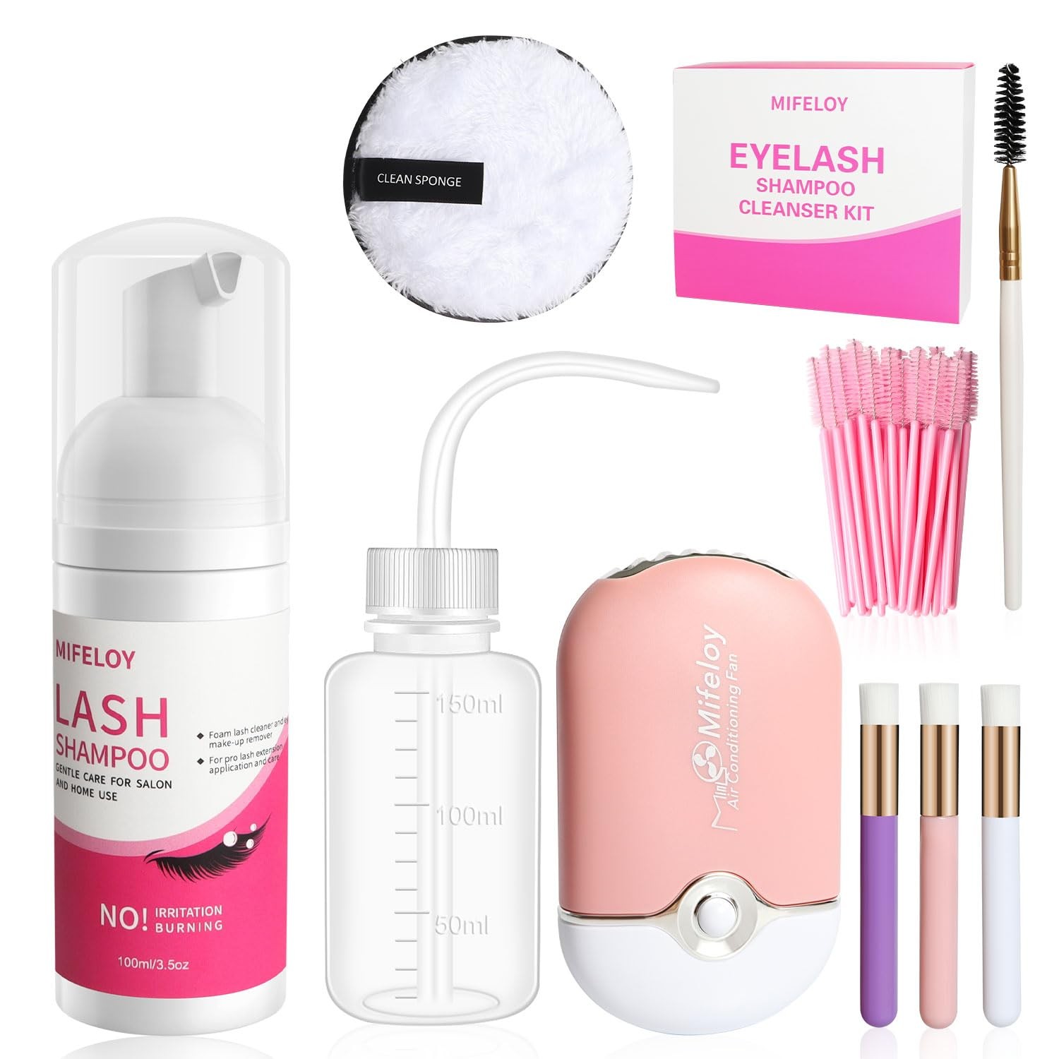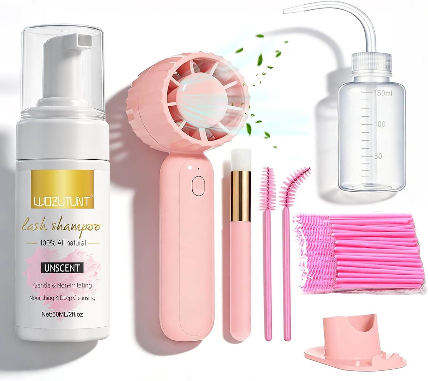 Eyelash Shampoo Cleanser Set, Lash Extension Clean Mousse, Mini USB Fan Pink
