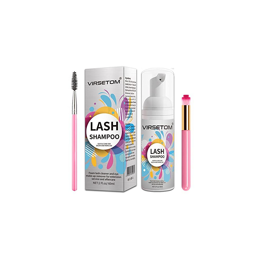 Eyelash Extension Cleanser, VIRSETOM Eyelash Extension Shampoo Eyelash Extension Foam & Brushes Eyelid Cleanser for Makeup Remover Paraben & Sulf