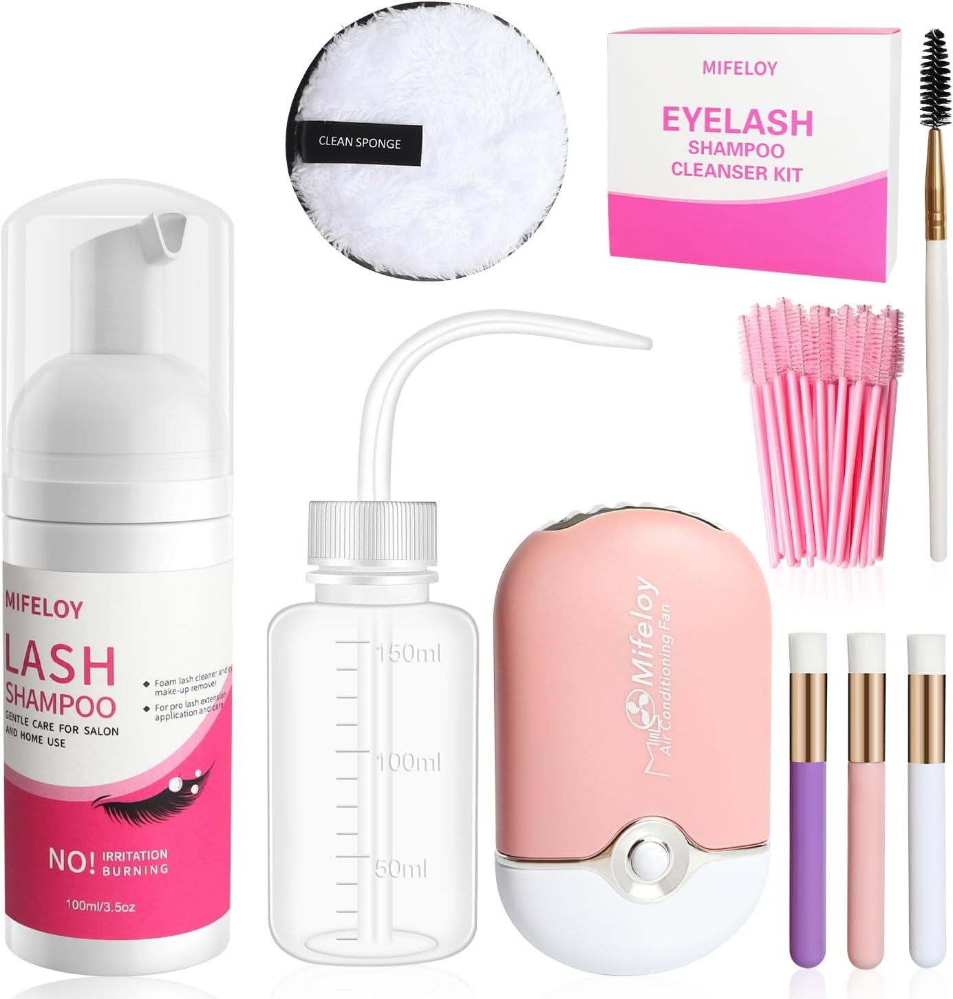 Eyelash Shampoo Cleanser Set, Lash Extension Clean Mousse, Mini USB Fan Dryer,
