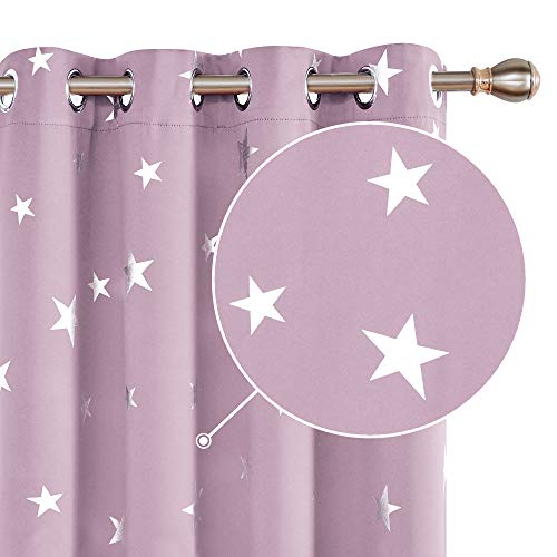 Deconovo Super Soft Star Foil Printed Thermal Insulated Eyelet Blackout Curtains for Living Room 46 x 54 Inch Baby Pink 2 Panels