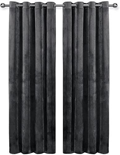 Oxford Homeware Blackout Curtains for Bedroom – Charcoal Velvet Curtains 66x72 - Thermal Insulated Eyelet Curtains for Living Room + 2 Tie Backs (168cm x 183cm)