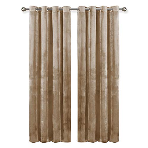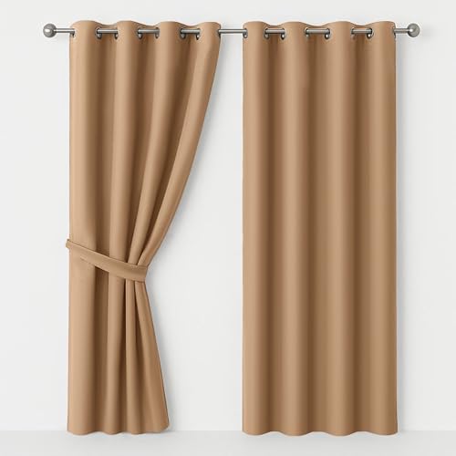Imperial Rooms Eyelet Blackout Curtains for Living Room 66x72 Inch Beige Bedroom Curtains Super Soft Thermal insulated Curtain 2 Panels with Tiebacks