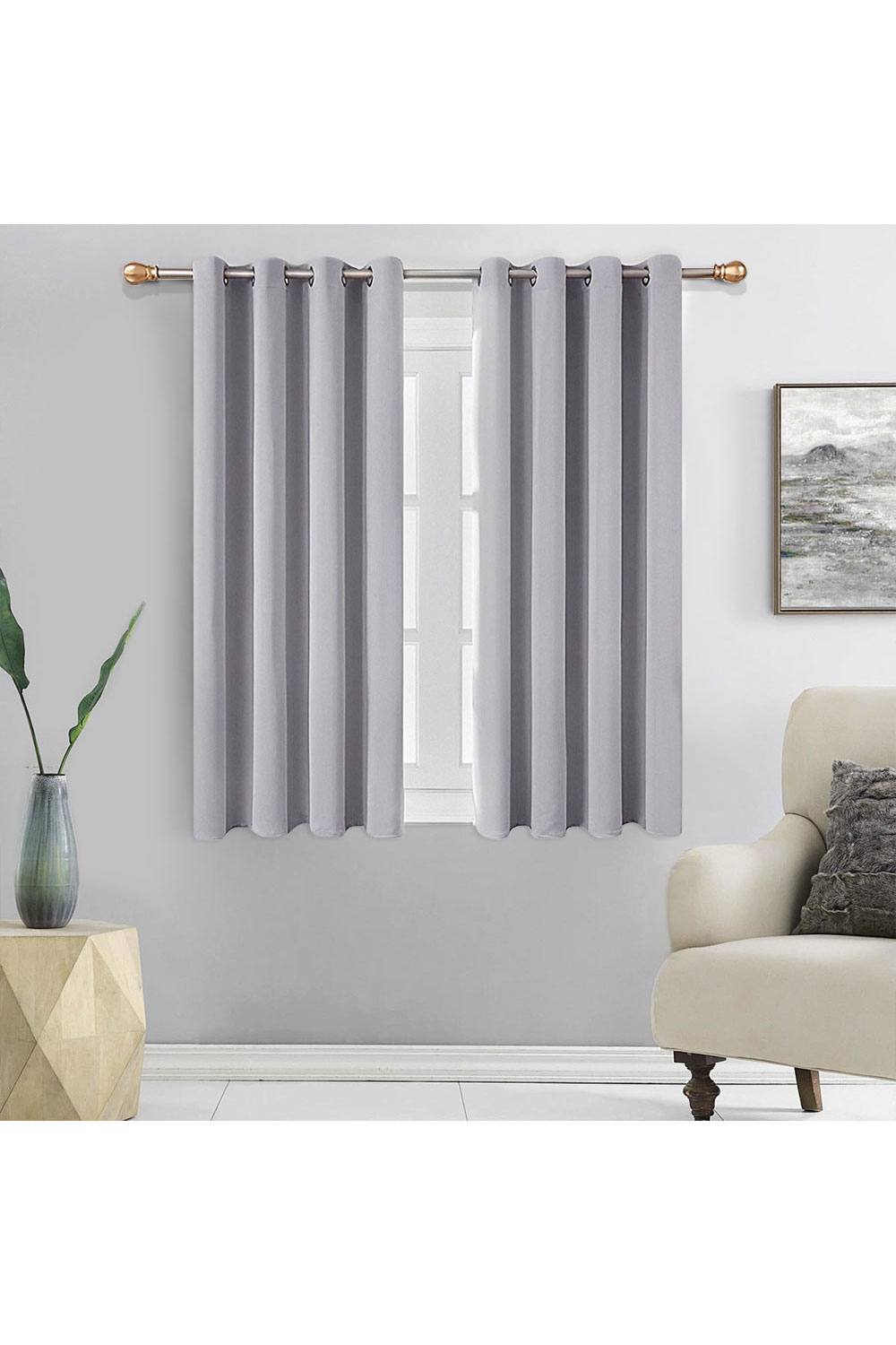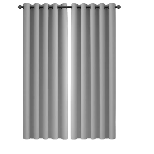 Living and Home 2 Panels Grey Blackout Curtains Polyester Drop Eyelet Curtains for Bedroom and Living Room, 117cm W x 137 cm H in Light Grey