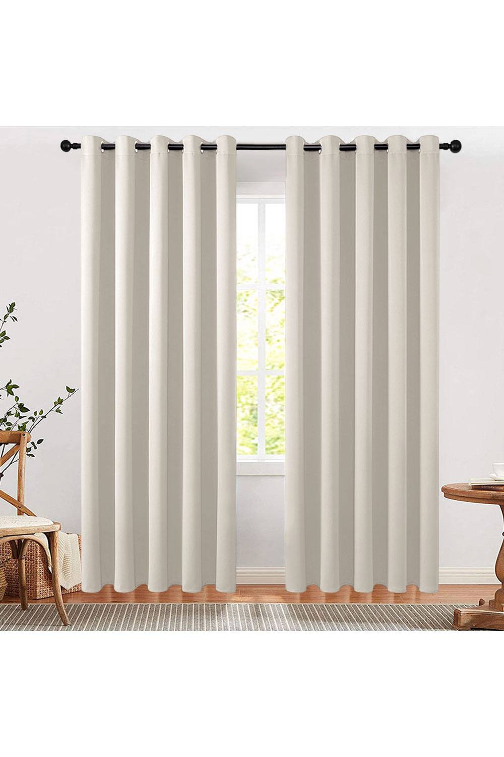 Deconovo Thermal Insulated Wide Beige Curtains Energy Saving Noise Reducing Eyelet Room Darkening Curtains for Living Room, 90 x 72 Drop Inch, 1 Pair, Beige