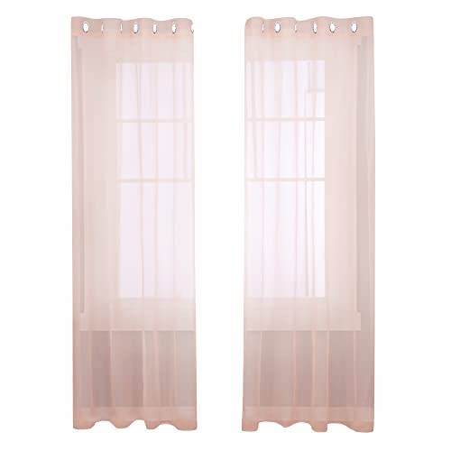 Deconovo Net Curtains for Windows, Semi Transparent Eyelet Voile Curtains for Living Room, Window Bedroom Sheer Panels, 55 x 110 Inch(Width x Length), Peach Pink, 1 Pair